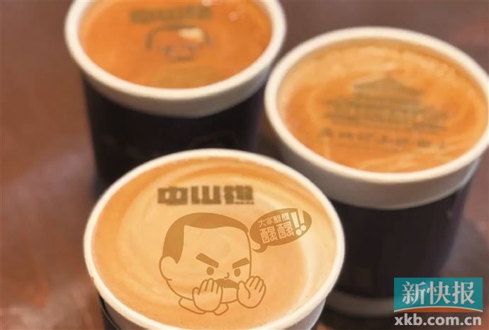 从广州中山纪念堂西三门走进园区,便会遇到“吾堂有礼·先生有请”咖啡店。推门进去,点一杯咖啡,一个小惊喜悄然而至:“中山樵”的卡通形象、纪念堂的主体建筑竟跃然杯中。
